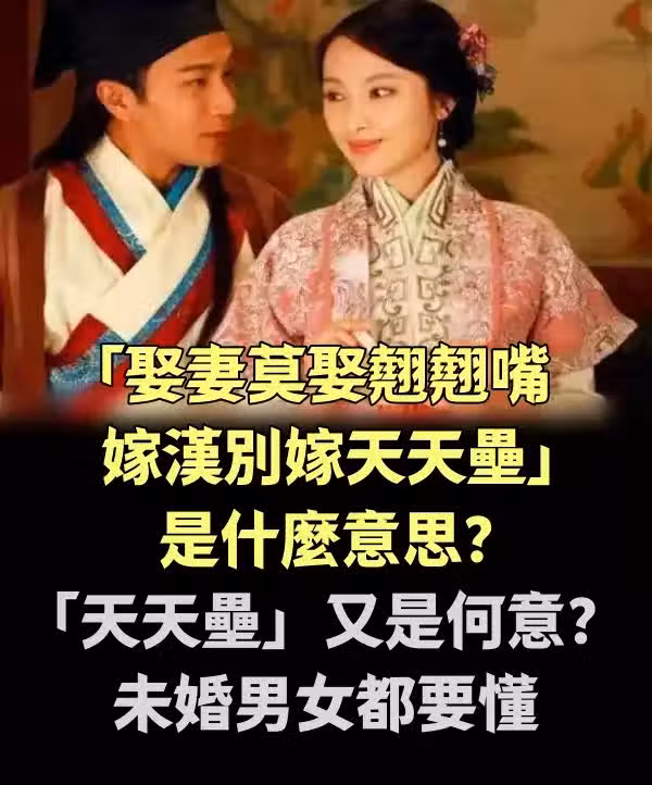 俗話:「娶妻莫娶翹翹嘴,嫁漢別嫁天天壘」是什麼意思?「天天壘」又是何意?未婚男女都要懂