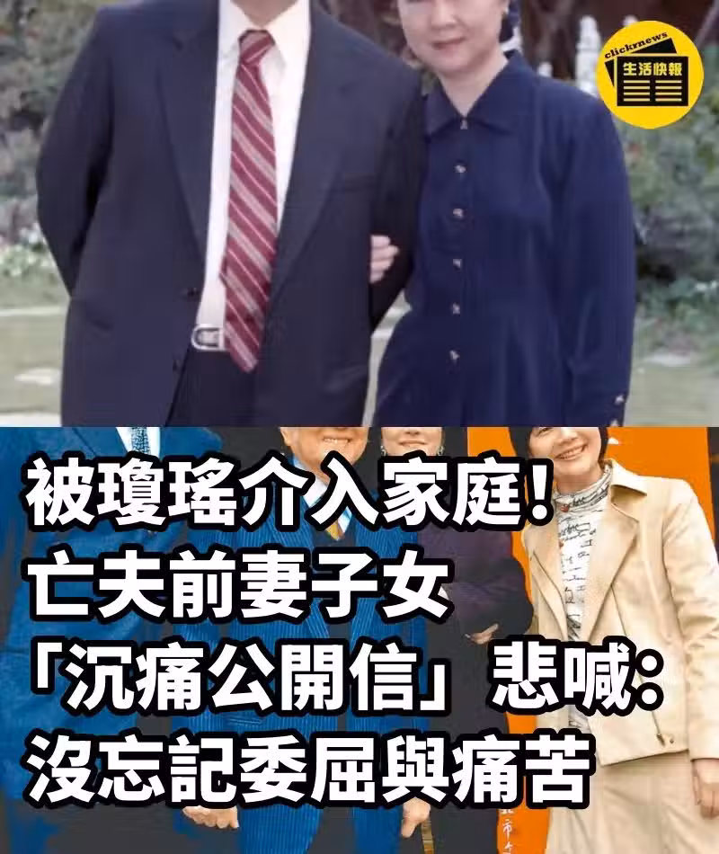 被瓊瑤介入家庭!亡夫前妻子女「沉痛公開信」悲喊:沒忘記委屈與痛苦