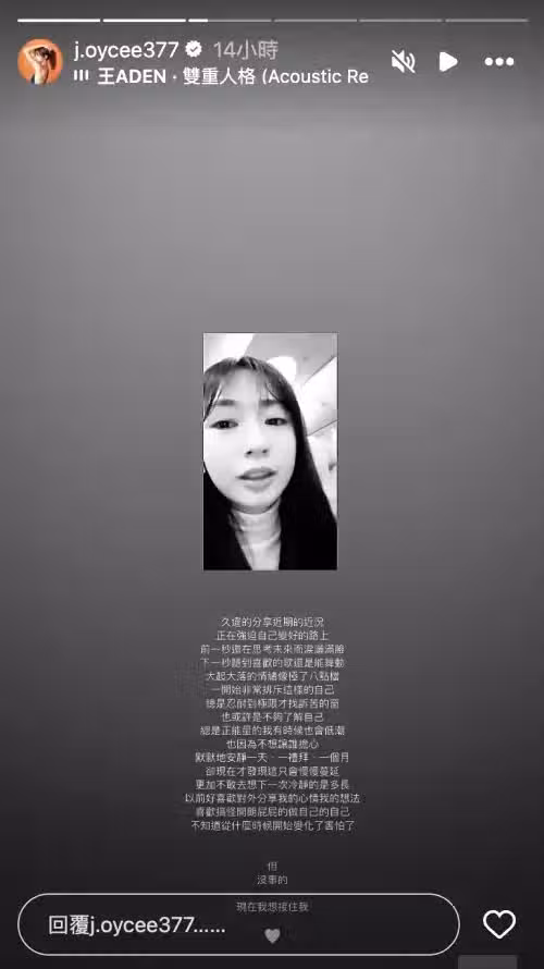 ▲慈妹曬出黑白畫面傾訴負面心情,同時為自己加油打氣。(圖/慈妹IG)