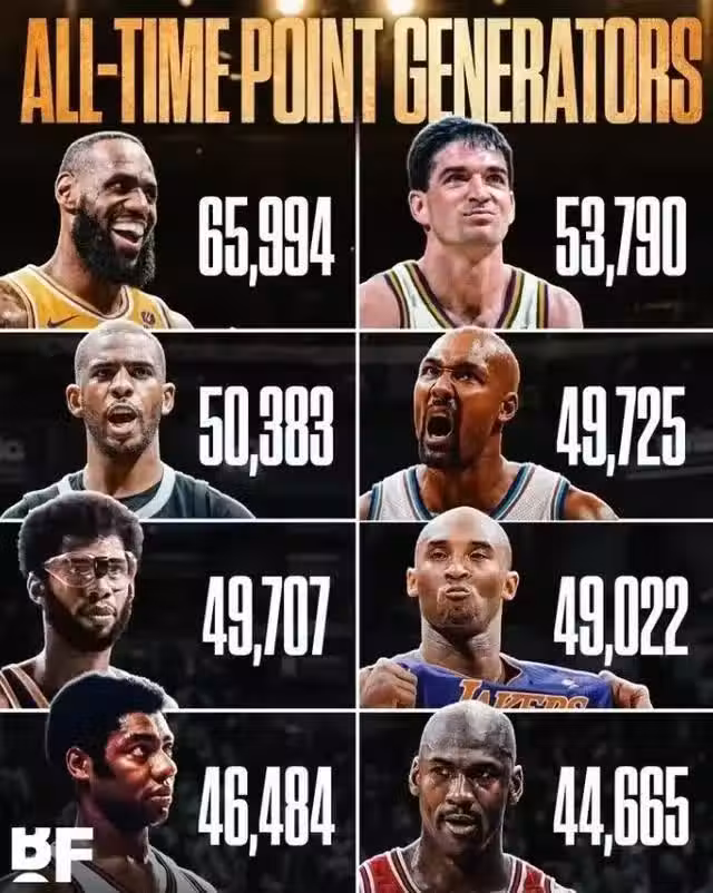 美媒評NBA史上創造得分最多的8位球星:喬丹44665第十,詹皇第一
