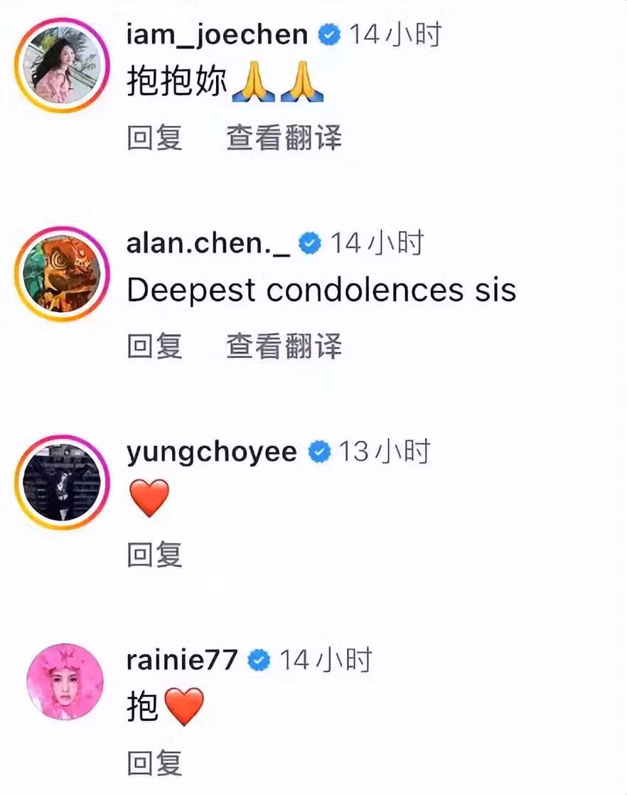 王心凌、潘瑋柏、容祖兒、阿Sa也都點贊了她的動態,朋友們都第一時間給予安慰。