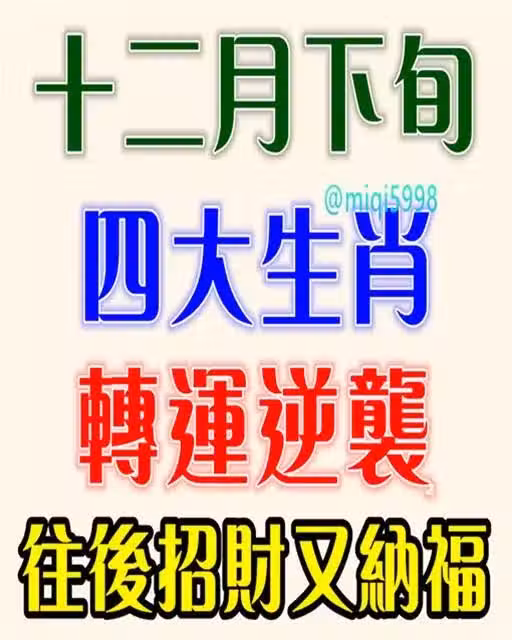 朋友們,你們好啊!如果最近你感覺自己像是被烏雲罩頂,別急,風水輪流轉,12月的尾巴,有四大生肖要上演一場華麗麗的逆襲大戲,從"貧民窟的百萬富翁"到"人生贏家",這轉變速度,連區間車都追不上!準備好了嗎?咱們這就揭秘,看看哪些生肖即將從泥潭中一躍而出,變成眾人羨慕的"錦鯉"!