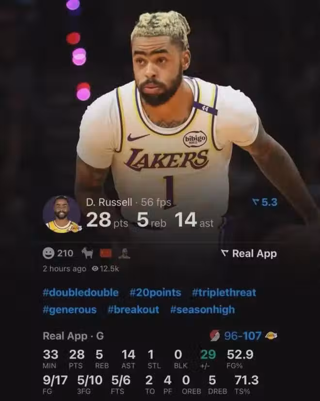 再據美媒火上澆油般的數據統計,上賽季當詹姆斯同樣休戰時的11場比賽,拉塞爾場均能狂轟21.7分10.8助5.6板1.4斷,三分命中率41%,期間湖人戰績6勝5負......