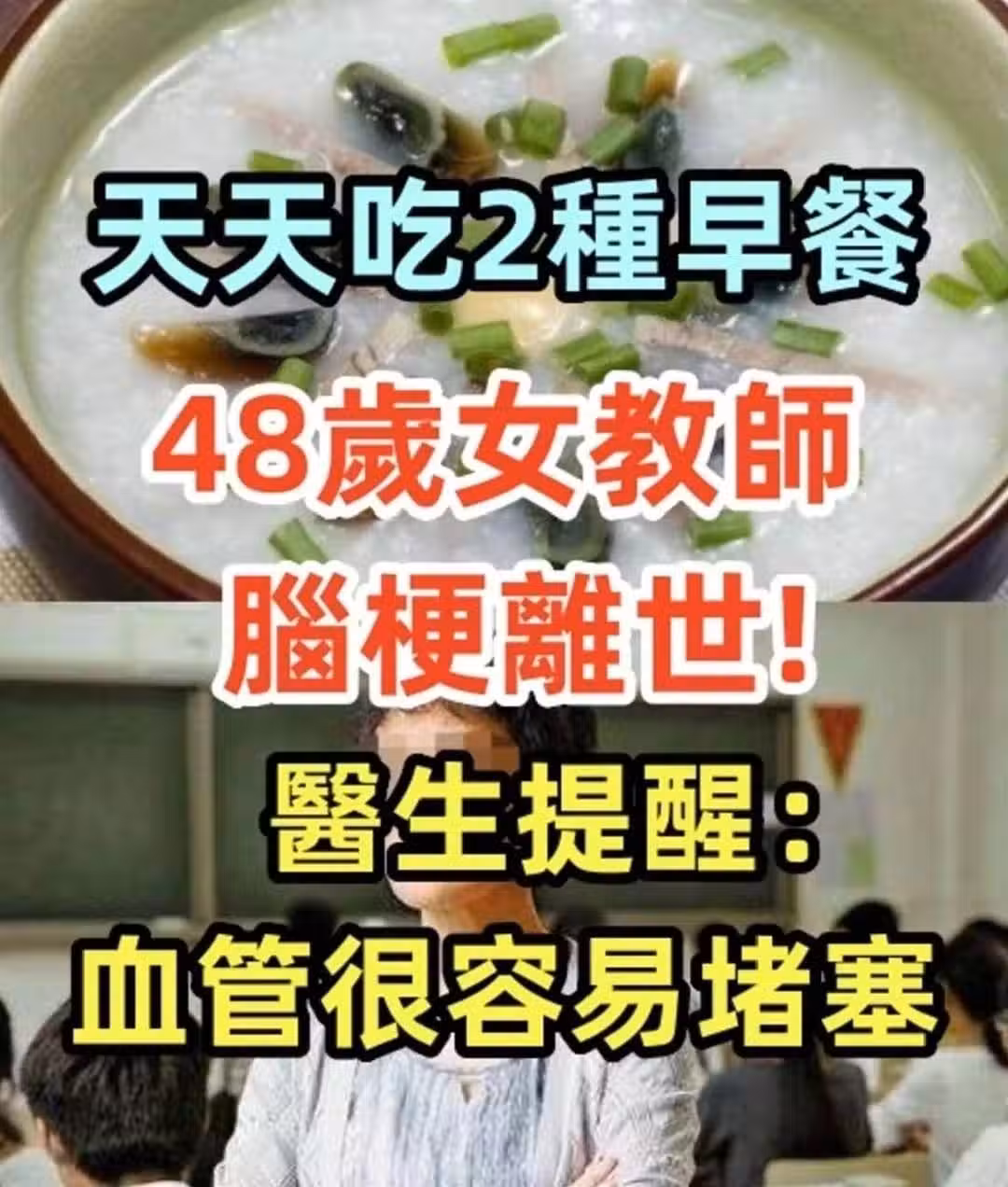 48歲女教師腦梗離世,醫生:天天吃這2種早餐,血管很容易堵塞!!
