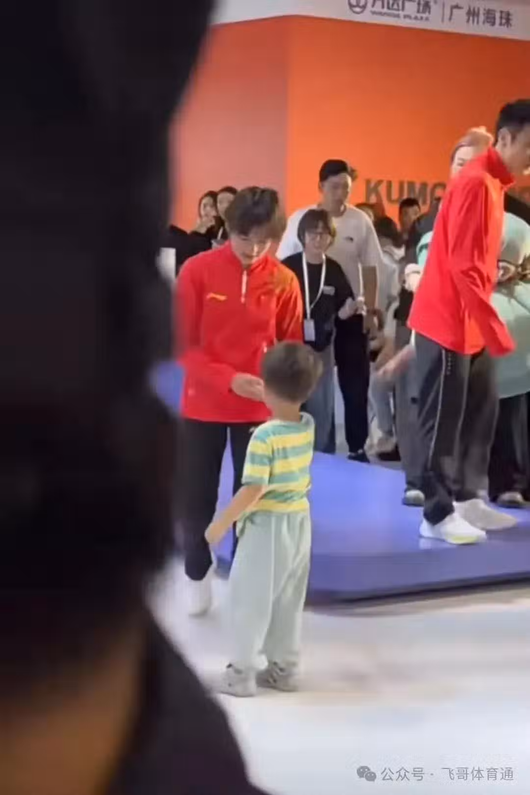 看到小朋友跑過來送禮物,全紅嬋趕緊下台接著,嬋寶超愛小朋友