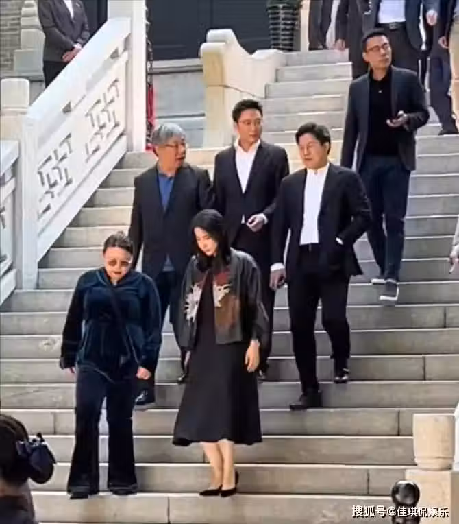 現場郭晶晶一襲黑色皮裙氣場十足,邊走邊與周圍的媒體記者們親切地打招呼。