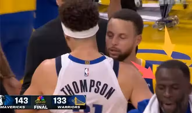 但是最意味深長的點是什麼?在他們兩個擁抱之前,格林剛從他們身邊過去,結果可以看到經過兩人身邊的追夢格林一句話都沒說,像不認識客來一樣。庫里倒是抱著湯普森說了好久,格林就是從旁邊走過去的,仿佛是路人,看起來格林對於湯神的離開還是耿耿於懷,非常不滿意。