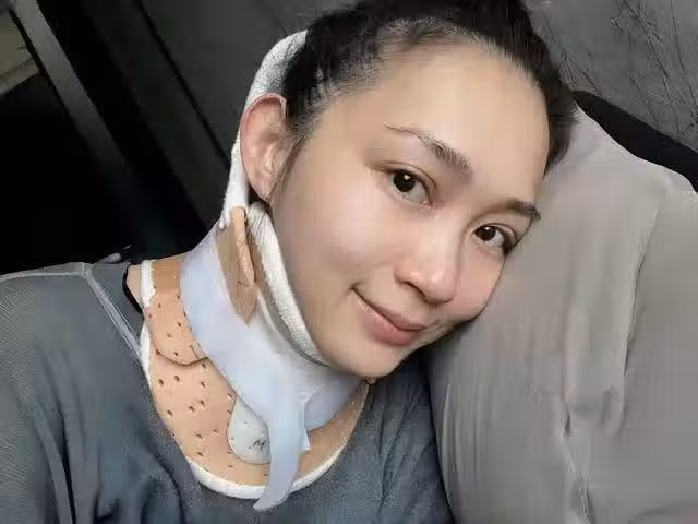 但最為搶鏡的,還是她的脖子上戴了一個頸箍,很明顯脖頸受傷。不過據楊焉自己透露:這次受傷並非不小心,而是自己「做」出來的,現在特別後悔。