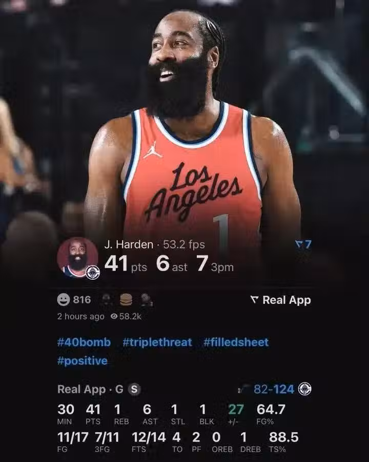 本賽季至今,哈登幾乎全勤,場均貢獻22.1分6.5板8.3助1.6斷,場均得分為近幾個賽季以來的新高,單核情況下帶領快艇目前取得15勝12負,排名西部第9。