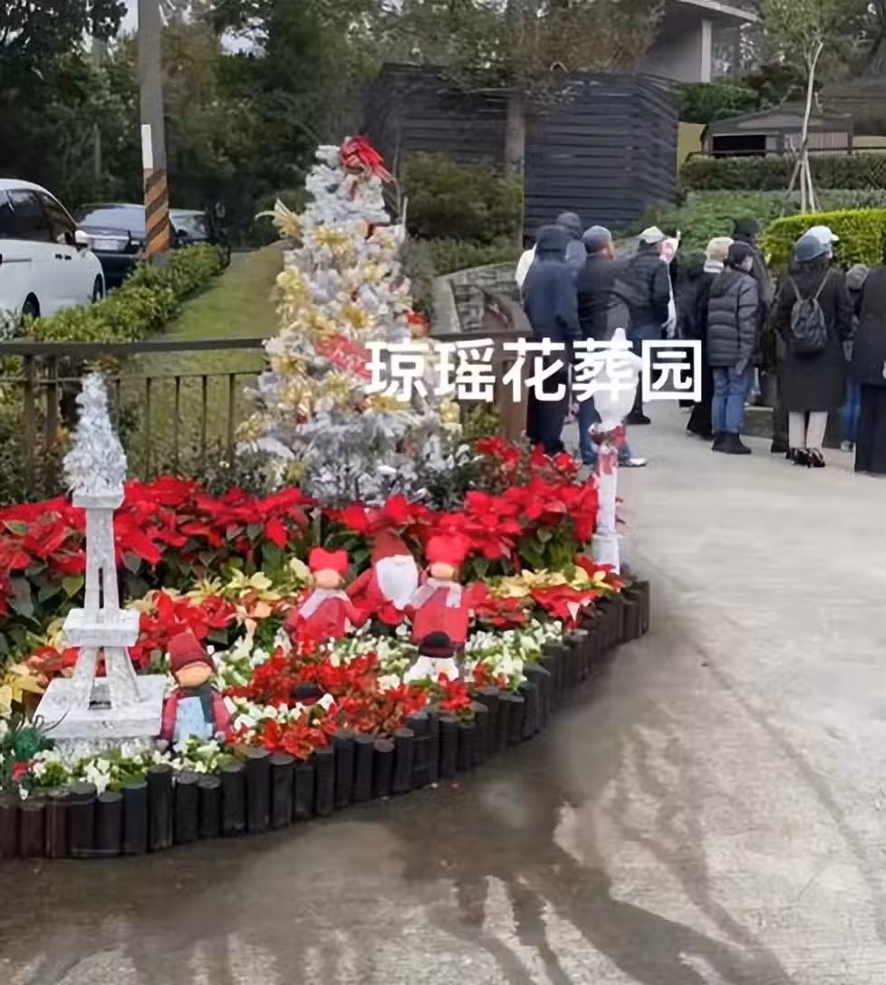 瓊瑤離世15天,墓園悼念人群仍舊排長龍,墓地入口擺著聖誕鮮花
