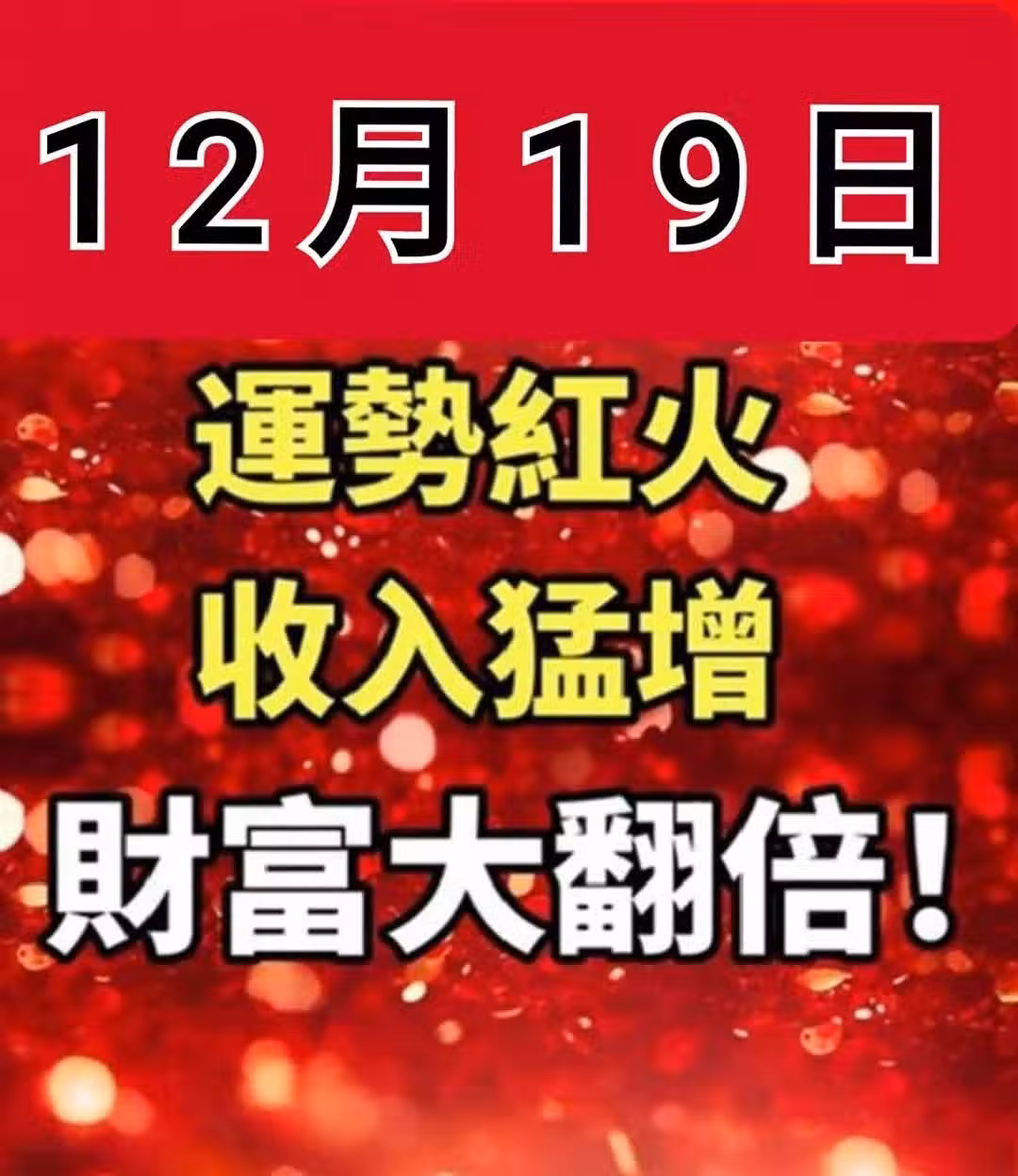 12月19日「 三生肖 」 運勢紅火 收入猛增 財富大翻倍。