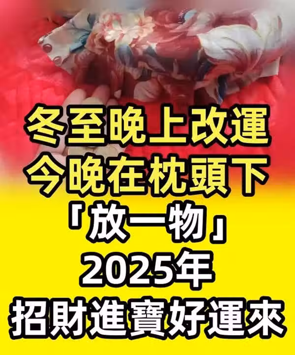 冬至晚上改運! 今晚在枕頭下「放一物」2025年招財進寶好運來!