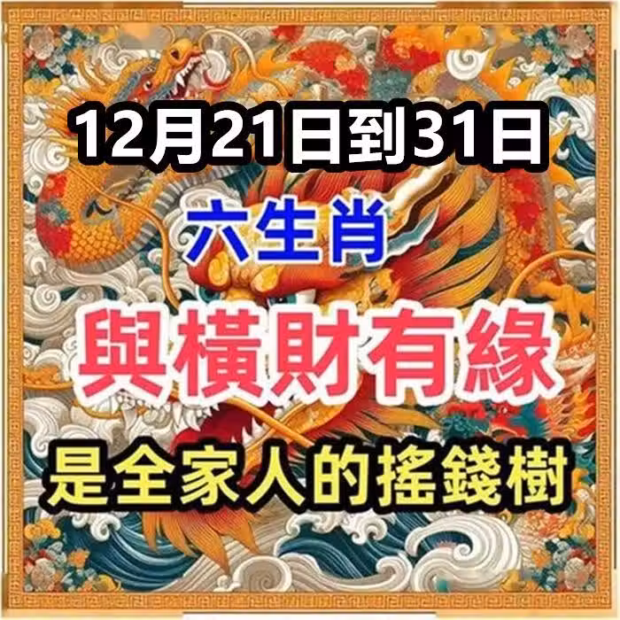 12月21日到31日與橫財有緣的生肖,是全家人的搖錢樹