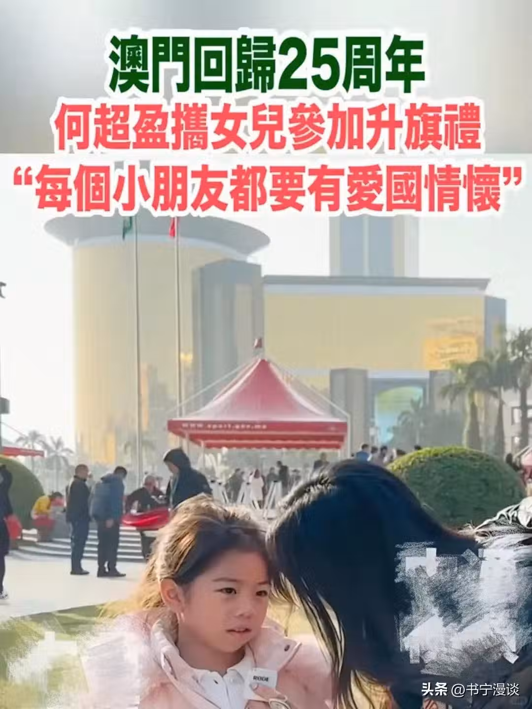 昨天澳門舉辦回歸25周年升旗禮,何超盈特意攜女兒參加,這是辛千覓出生以來首次公開現身,其長相引發了網友們的熱議。