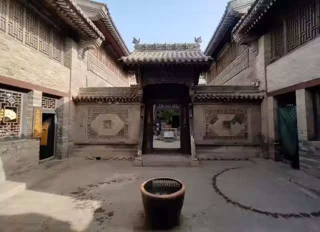 仔細看的話就會發現對面的照壁上有雕刻著獅子滾繡球,這寓意就是希望王家能夠子孫興旺。此外還有就是地上的每一個排水口都是錢幣的樣子,寓意水走錢留。