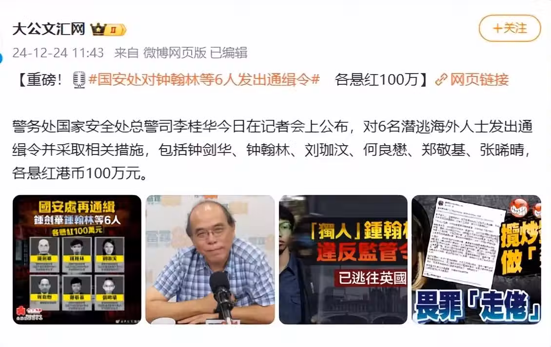 文中指出,鄭敬基在2020年7月到2024年6月期間,於某社交平台發布分裂國家的影片,請求外國對中國及中國香港進行「制裁」,於2020年6月25日離開香港,警方發布通緝令呼籲相關人士提供消息。
