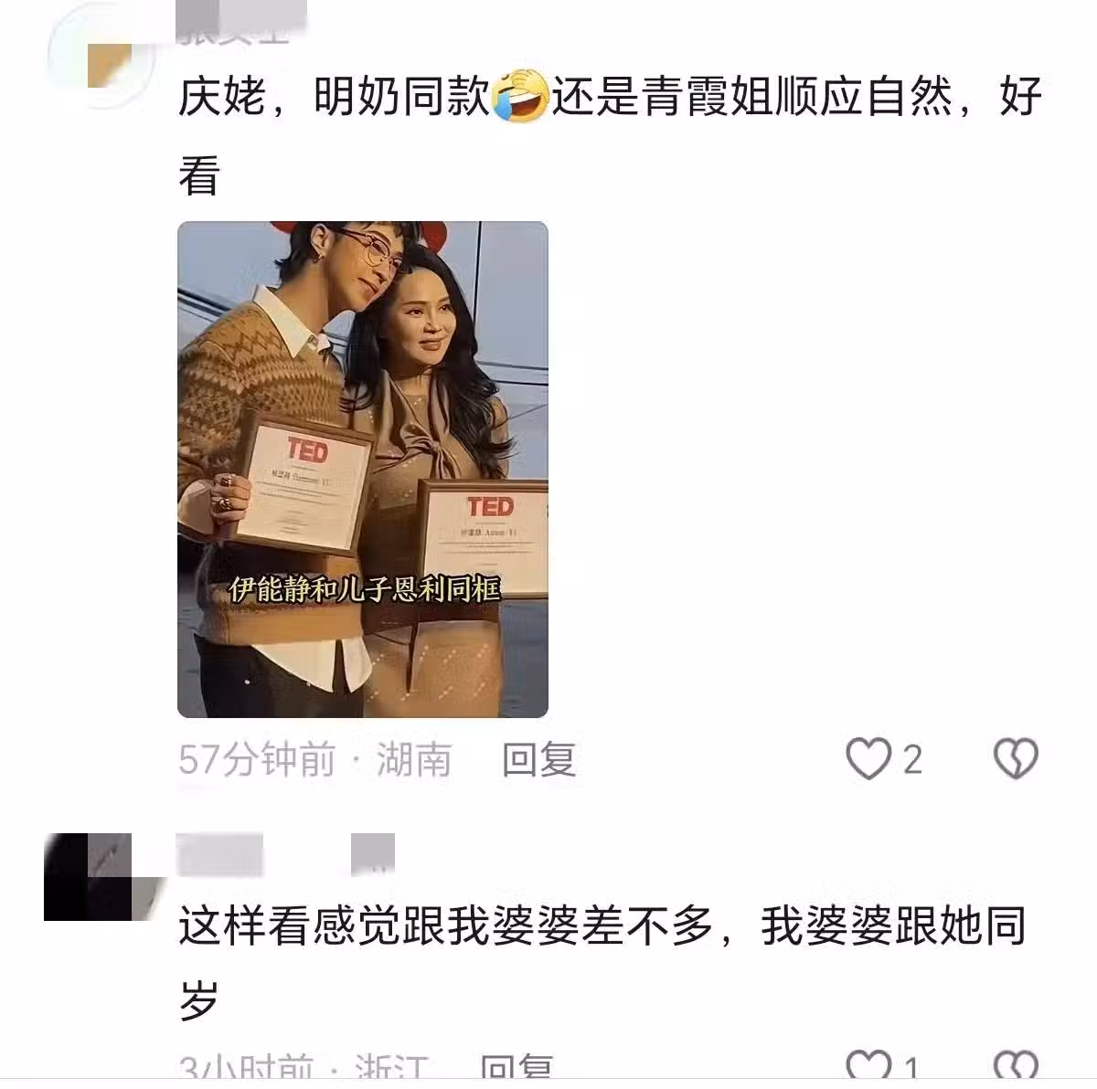 網友表示,看了伊能靜的臉,突然不焦慮了,原來有錢人不過如此,擋不住自然規律。