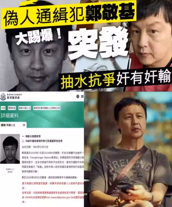 62歲鄭敬基涉「煽動分裂國家」 被警方國安處懸紅一百萬港元通緝