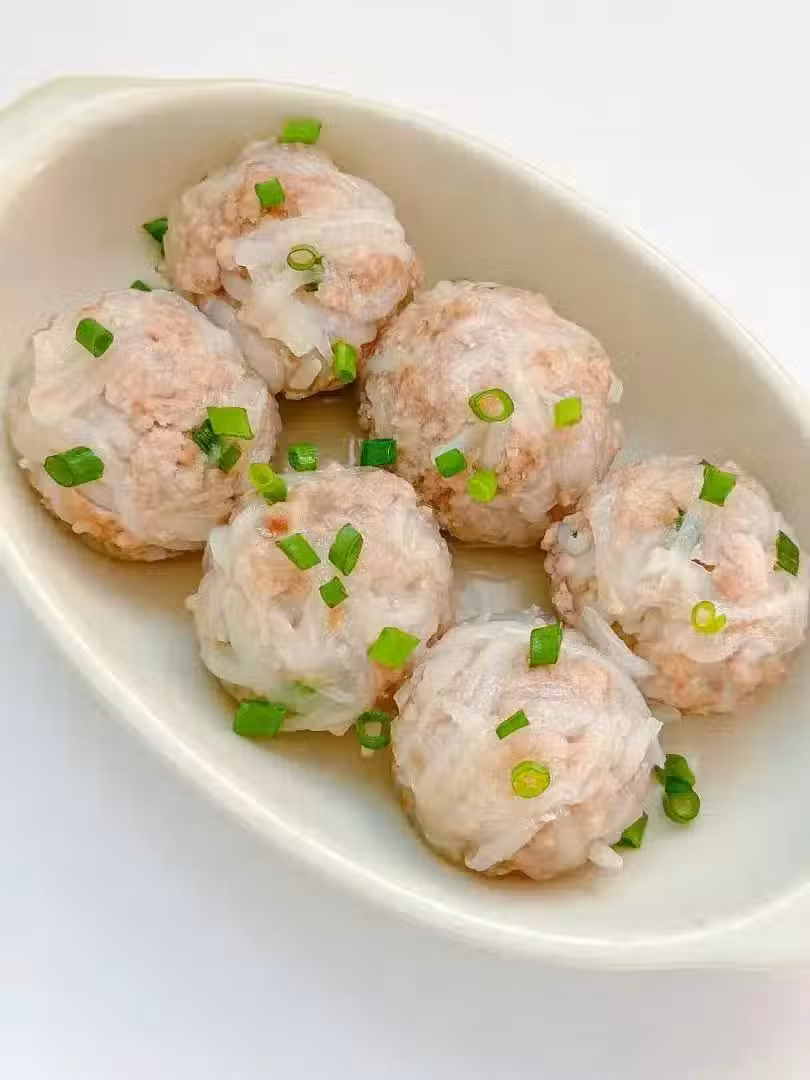 4、放入澱粉、鹽拌勻;搓成丸子上鍋蒸15分鐘即可。