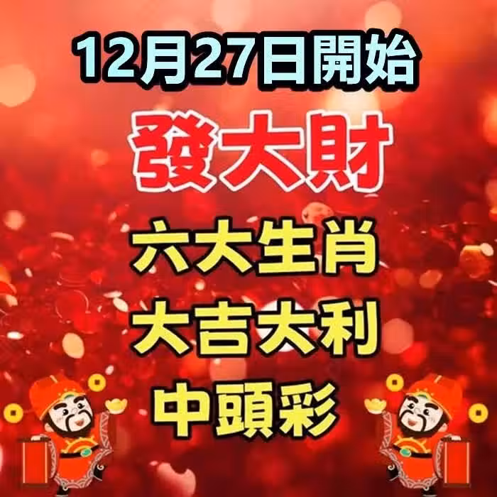 12月27日開始發大財,六大生肖大吉大利中頭彩