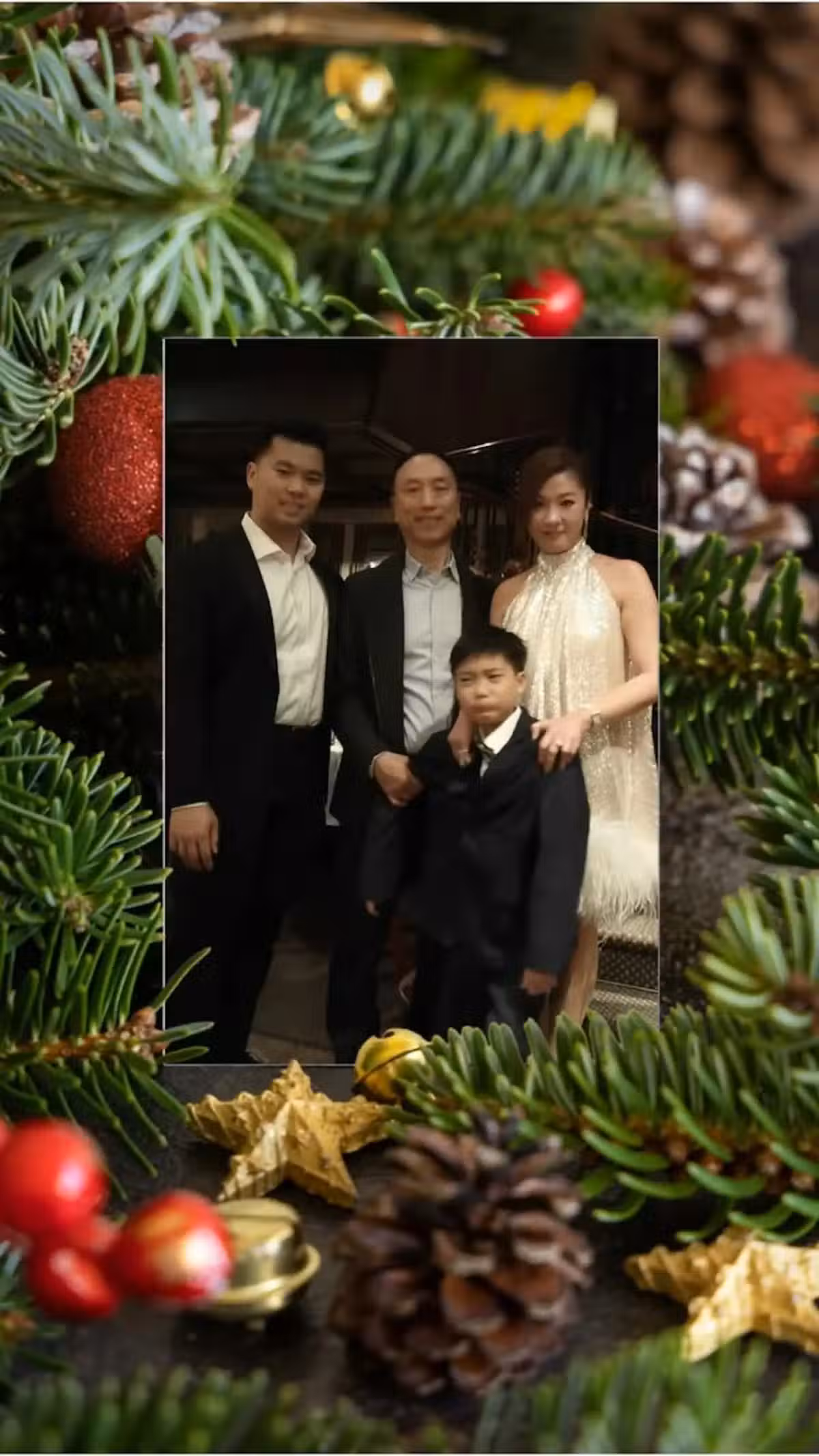 翁嘉穗與家人過聖誕,合照70歲丈夫不顯老,9歲次子做鬼臉很可愛