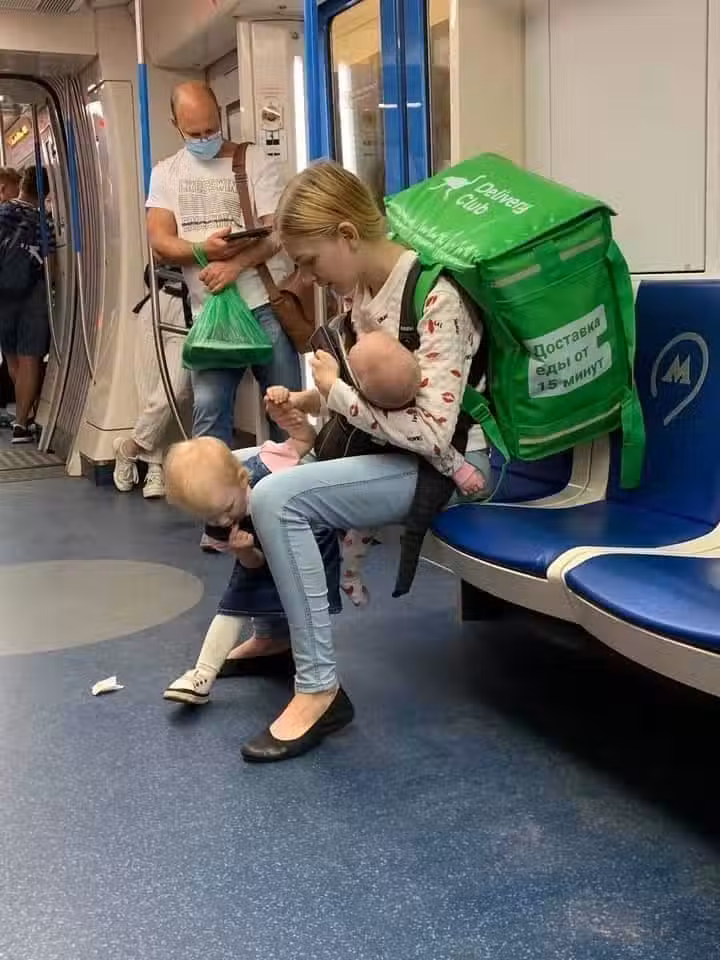 Lada的大女兒是在17歲時生下的,為了維持生計,她推著嬰兒車到處跑外送,隨後她便搬到莫斯科,繼續帶著孩子一起外送。