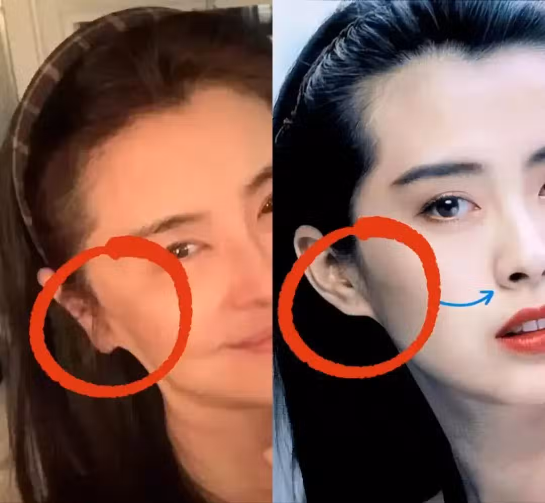 還有網友通過對比,認為她可能拉皮了,以前耳朵側面看很正常漂亮,現在則是明顯的後移和松垮。但其實人類隨著衰老嘴巴和耳朵皮膚都會有變化,不能因此判定什麼。