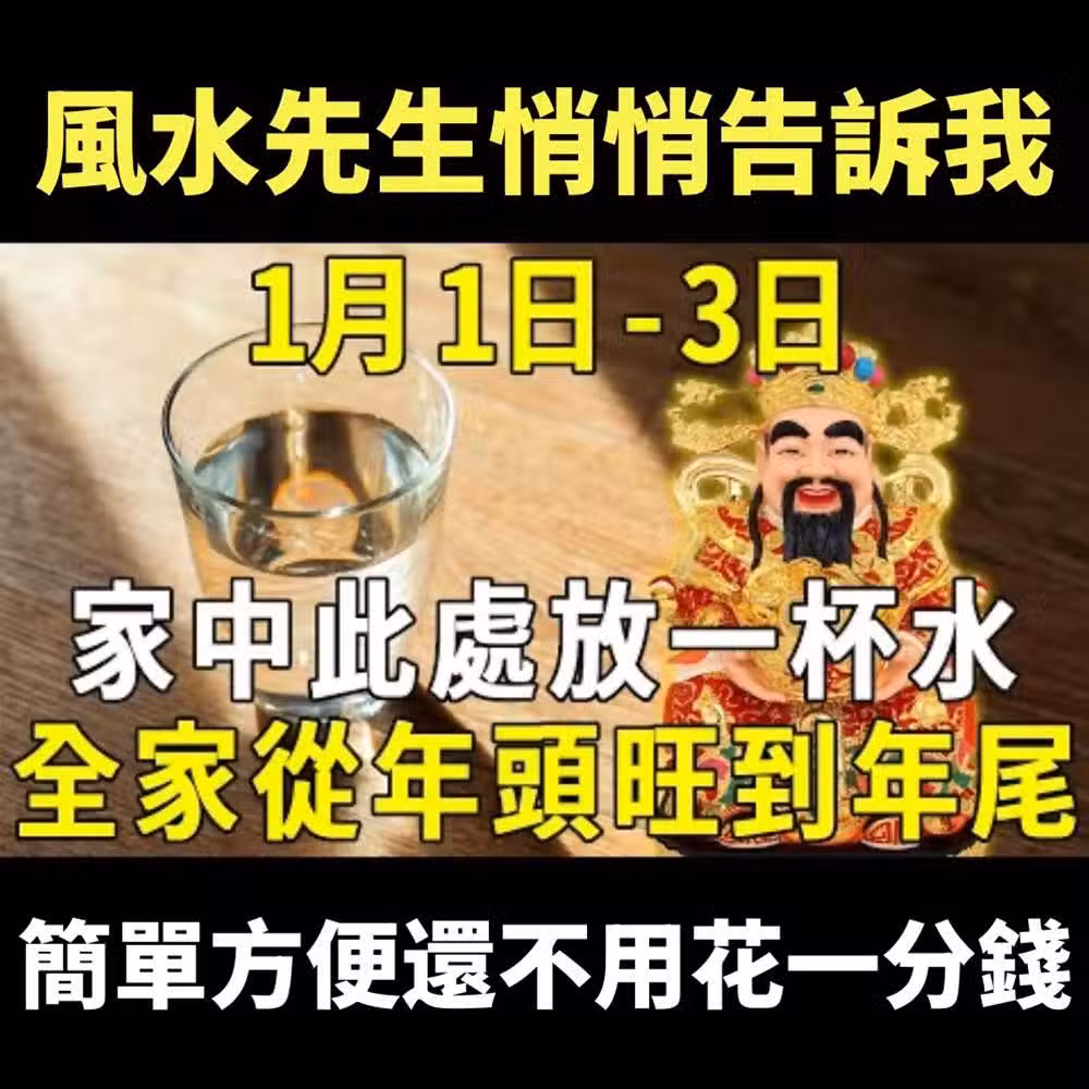 風水先生悄悄告訴我:新年1月1日~3日,家裡這個地方放一杯水,讓你全家從年頭旺到年尾!簡單方便還不用花一分錢!