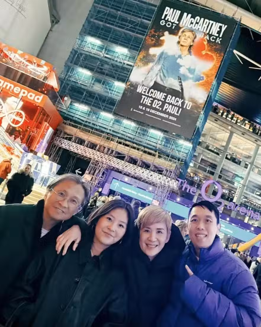 陳可辛一家人與馮貽柏在披頭士樂隊成員所在The O2 Arena場館前留影合照,由於天氣寒冷,眾人都穿上了厚厚的衣服。陳可辛全家穿了黑色的外套,只有馮貽柏穿了紫色的大衣,而合照中的焦點當然是吳君如現年18歲的女兒陳是知。陳是知在合照中站在了中間,她的旁邊是陳可辛與吳君如,難得看到一家三口正臉合照,對比起來陳是知真是吳君如與陳可辛的合體,她的眼睛很像吳君如,而嘴巴與鼻子很像陳可辛,整體而言,越大越像陳可辛。雖然不是傳統意義上的美女,但是吳君如與陳可辛的面相本來也不差,陳是知的長相也算是標緻,事實上如今還在求學的她已經出道了。