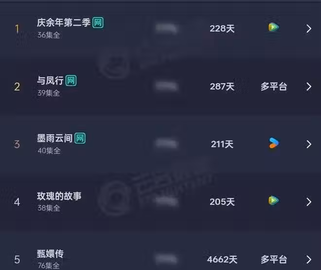2024播放最高十部國產劇,趙麗穎、劉亦菲一部上榜,第十僅播33天