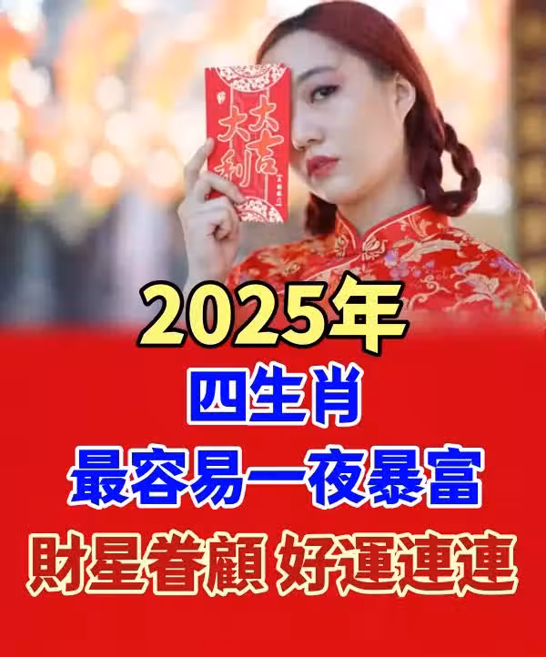 2025年「這四生肖」最容易一夜暴富:財星眷顧,好運連連!!