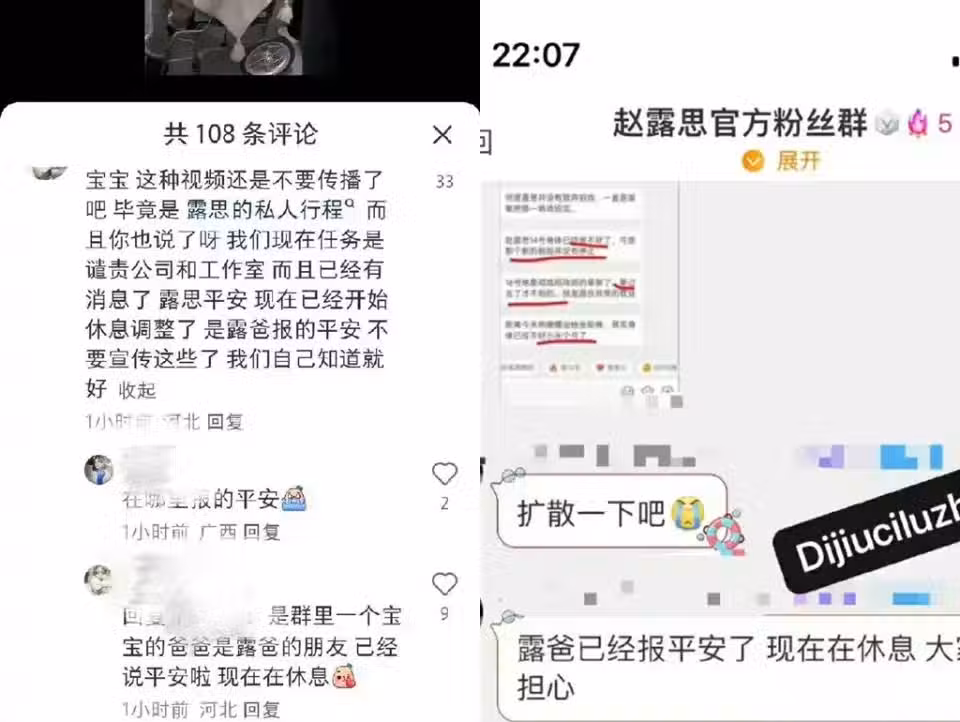 傳出趙露思爸爸已在粉絲群組報平安,表示女兒正在休息,要大家別擔心。(圖/翻攝自微博)