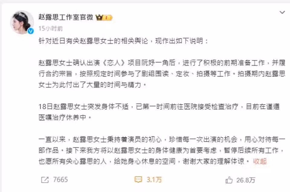 趙露思工作室全文。(圖/翻攝自趙露思工作室官微 微博)