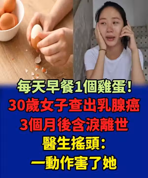 每天早餐1個雞蛋!30歲女子「查出乳腺癌」3個月後含淚離世 醫生搖頭:一動作害了她…