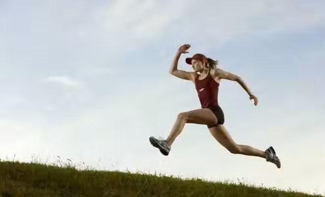 3.原地高抬腿,身體立正姿勢,抬頭挺胸收腹部,雙手端起呈現跑步姿勢,原則是雙膝往前抬腿,讓大腿和地面保持平行,大腿和小腿呈90度最好,這個相對於前面兩個比較累,時間20秒。