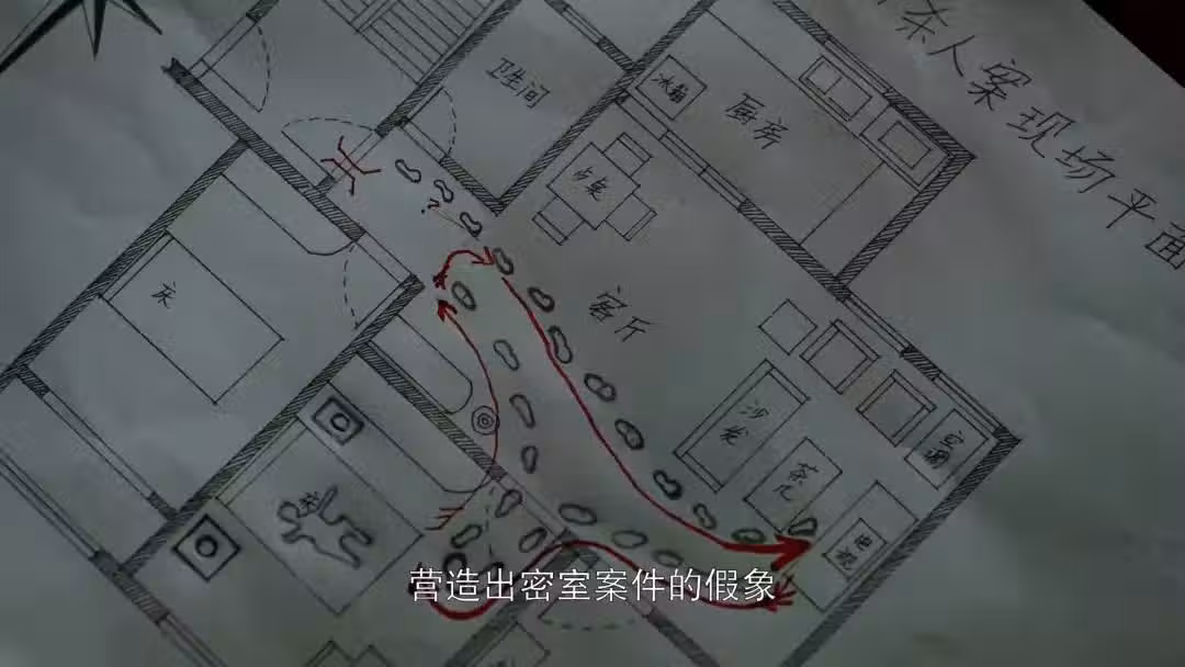 另外,烏老不僅僅在現場發現腳印有問題,也在原本已經排出的床單上,發現了兇手兇器的形狀。這是兇手兩次把兇器放在同一個位置形成的圖形,因為重疊外加模糊,導致一般人根本看不出來。