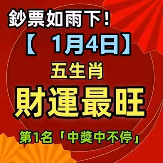 鈔票如雨下!【1月4日】五生肖財運最旺,第1名「 中獎中不停 」