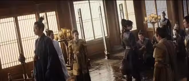 這裡有一個魏淵和許七安背對背的鏡頭,拍的是既有意境,又特別帥氣,十分符合兩個角色的定位。尤其是王鶴棣轉頭的鏡頭,真的和國風漫畫里的男主人公一模一樣。