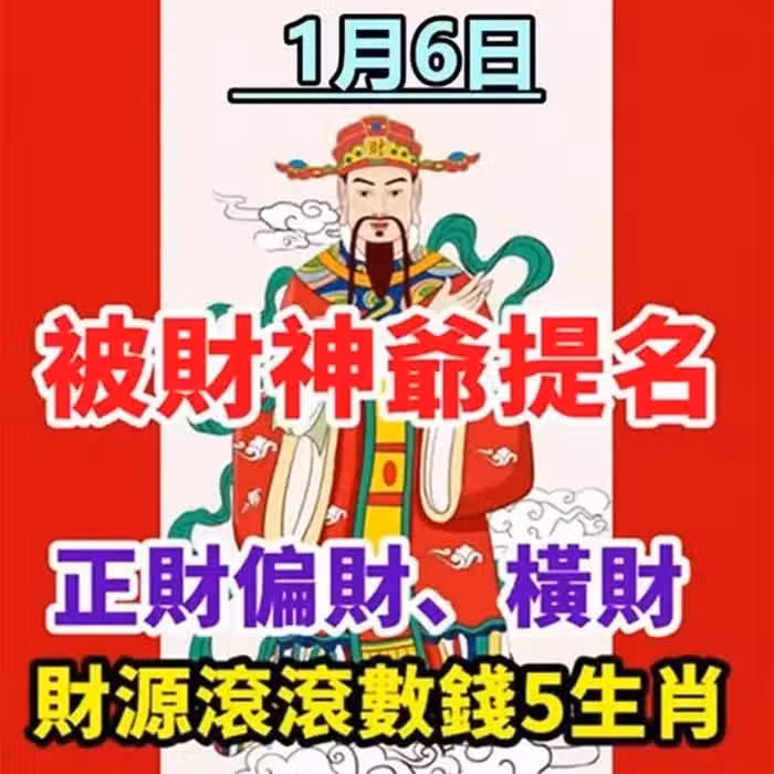 2025年1月6日被財神爺提名,正財偏財、橫財,財源滾滾,忙著數錢的5生肖 。