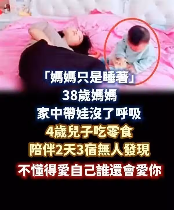 「媽媽只是睡著」38歲媽媽家中帶娃突然沒了呼吸 4歲兒子吃零食陪伴2天3宿無人發現