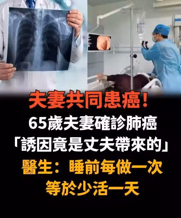夫妻共同患癌!65歲夫妻確診肺癌「誘因竟是丈夫帶來的」 醫生:睡前每做一次等於少活一天