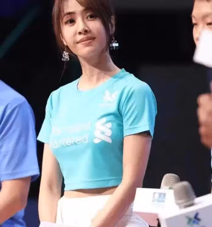 在前段時間的時候才已經參加了一個活動,大家可以從照片上看到,她像一個少女一樣,非常的活潑可愛,她上面穿著一個藍色的短袖下面穿了一個白色的裙子,非常的短。