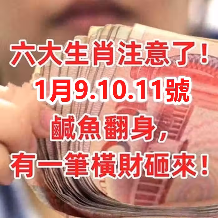 1月9.10.11號鹹魚翻身,有一筆橫財砸來的生肖!