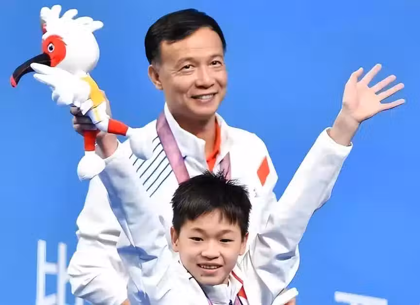 同年11月,全紅嬋留在了國家隊里,為了更科學的指導全紅嬋的訓練,也更方便照顧全紅嬋的生活起居,男教練何威儀換成了陳若琳這個女教練。
