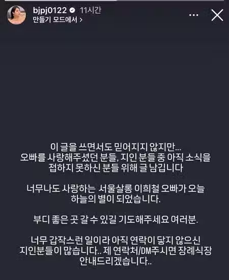怎料7日,李熙哲的好友突然在社群發出訃聞,「李熙哲哥哥今天變成天上的星星了,當我寫下這篇文章時,我簡直不敢相信,請祈禱他在天上過著美好的生活」,透露李熙哲已不幸離世。