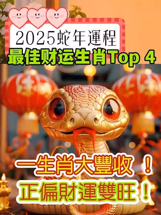 2025蛇年運程|最佳財運生肖Top 4 一生肖大豐收!正偏財運雙旺!
