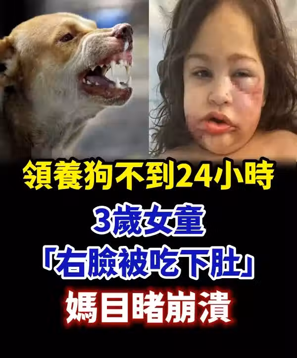 領養狗不到一天,小女孩右臉被吃下肚,媽目睹崩潰
