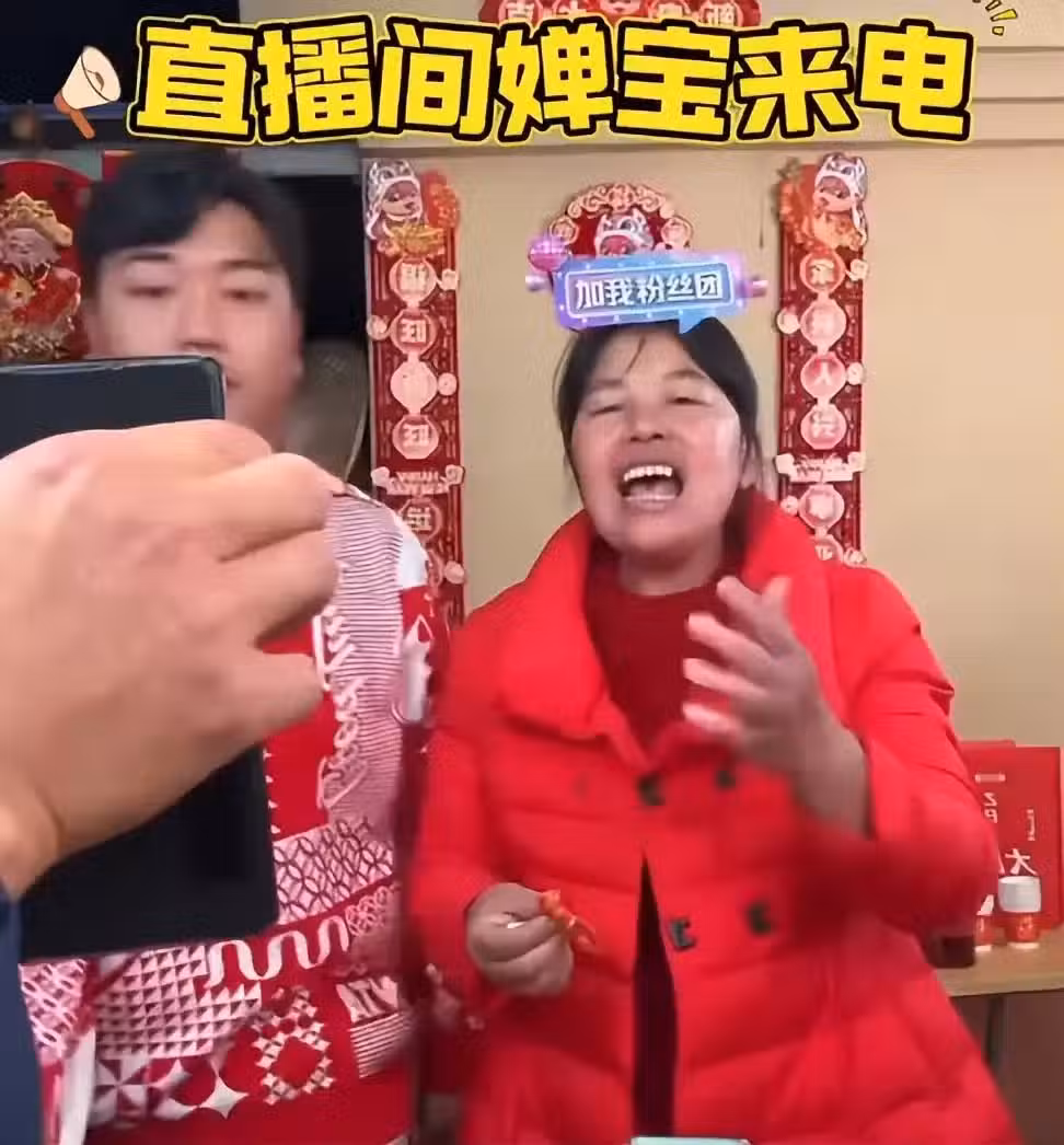 全紅嬋家人賣的年貨有不少品種,水果有柚子、香蕉和甘蔗。這次直播賣大蝦,全進華穿著很喜慶的紅色打底並有白色圖案的毛衣。全媽則穿了紅色的外套。全紅嬋打來電話商量事情,工作人員拿了手機,讓全媽和全進華和嬋寶說話。