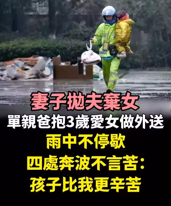 妻子拋夫棄女,單親爸抱3歲愛女做外送,雨中不停歇四處奔波不言苦:孩子比我更辛苦