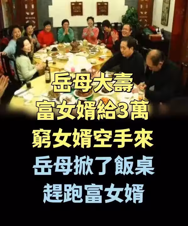岳母大壽,富女婿送3萬大禮,窮女婿卻空手而來